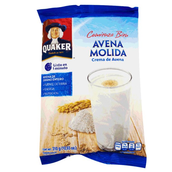 Producto de alta calidad Quaker: Crema de Avena Molida Quaker (310g). Excelente opción para desayunos nutritivos o recetas especiales. Seleccionado cuidadosamente por Familia Sanchez Parra. Fuente natural de fibra soluble para la salud digestiva. Ideal para desayunos que proporcionan energía duradera.