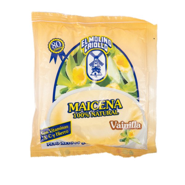 Producto de alta calidad El Molino Criollo: Maicena Molino Criollo Vainilla (50g). Excelente opción para desayunos nutritivos o recetas especiales. Seleccionado cuidadosamente por Familia Sanchez Parra. Textura extrafina ideal para espesar salsas o lograr una consistencia perfecta en postres y panadería.